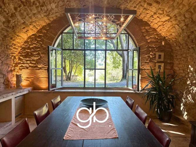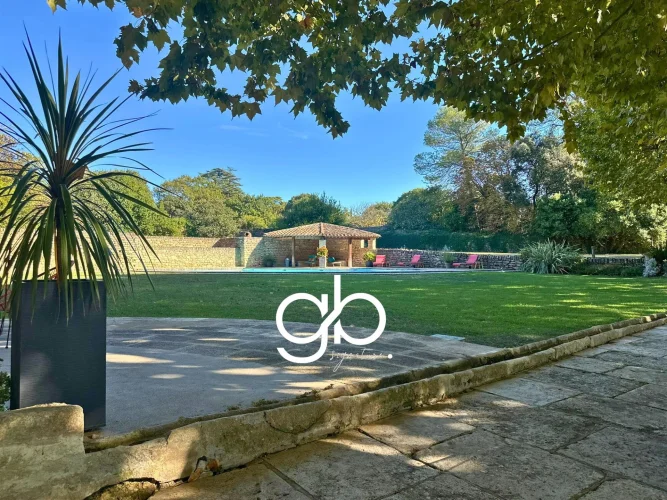 Exceptional Mas of 400m2, Property of 3.5 ha In the heart of the Vaunage plain, only 30 minutes from the Mediterranean, at the same distance from Nimes and Montpellier and the airport, we are in the center of a medieval village, History accompanies us with a scent of Provence, on the market square, renowned, very lively, protected by the arcades of the Roman bridge, folklore is permanent, it is easy to reach the heights of the village on foot or by bike, we discover an exceptional property, discreet, with a masterful view of the plain of Pic Saint Loup, at sunset, An avenue of olive trees accompanies us to the main mas of approximately 400m2, entirely renovated by a renowned architect, we discover a living room bathed in light with its old fireplace, an open and modern kitchen, signed Bulthaup, with its pantry and linen room, to receive, a large vaulted dining room and view of the park, on the same level, we have 4 bedrooms including 2 suites, reception and relaxation areas, On the terrace, under the hundred-year-old plane trees, the view is dominant, A large swimming pool and its beach allow moments of relaxation, surrounded by a natural water circulation, built in Roman times An annex house, of approximately 100m2, currently a gym and cinema, could correspond to a development project, The property has garages, outbuildings, It is a unique place, which we contemplate, luxury is this place and this space to live everyday life out of the ordinary, - Edouard Racine Racine Carre (Sarl) or Rsac Guylene Berge Realty Occitanie - Dpe D (248) and D (6) Average price on energies indexed over the years (subscription included) between 5650? and 7750? Information on the risks to which this property is exposed is available on the Géorisques website: