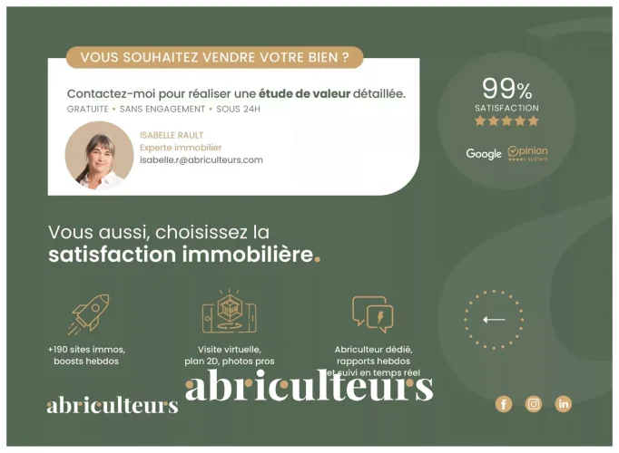 Welcome to Abriculteurs, the family-run agency committed to exceptional real estate service. Discover a meticulous presentation of this property: professional photos, a detailed plan and an immersive virtual visit to project yourself in a unique setting. Trust our expertise to turn your real estate projects into remarkable successes.