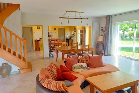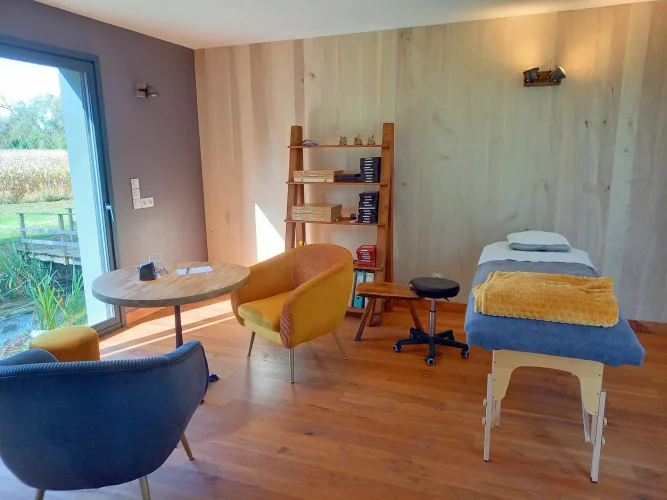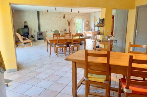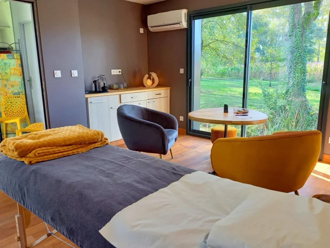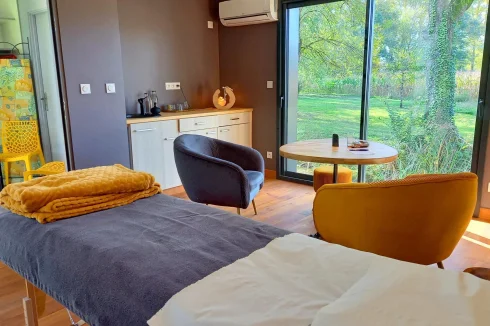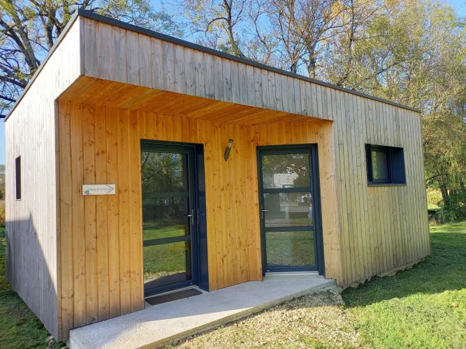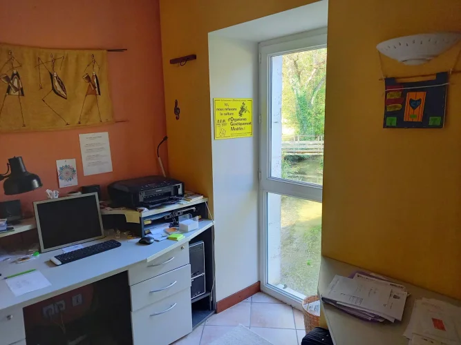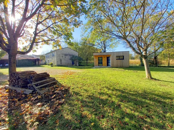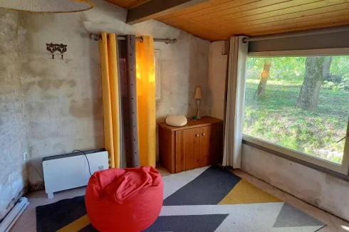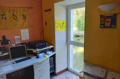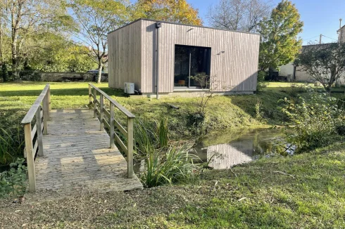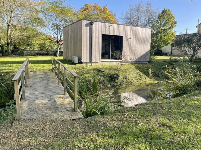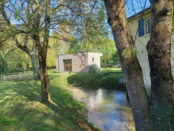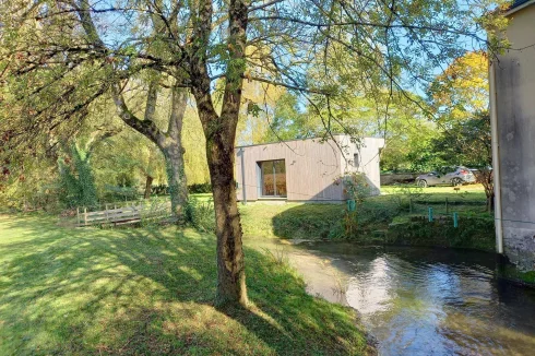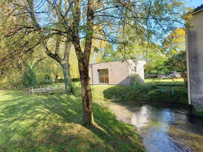 The new annex of 27m² built in 2023 comprising an entrance hall, toilet and beautiful room used as professionnal office with lovely views over the garden and river. All has been planned to include a kitchen.