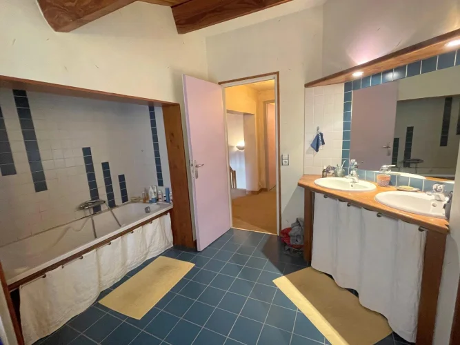 The 1st floor offers s a landing leading to four bedrooms, a bathroom, toilet and a room (planned as a 2nd shower room). Separate room with woodstoveused as private office