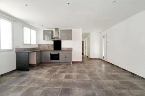 It is composed of a kitchen open to a living room, two bedrooms, a bathroom, a laundry room and a separate toilet.