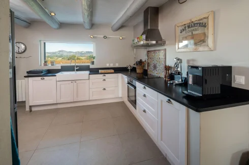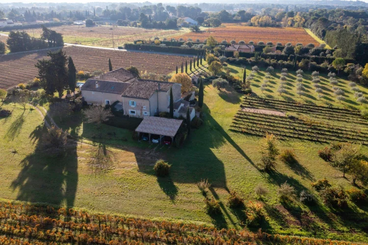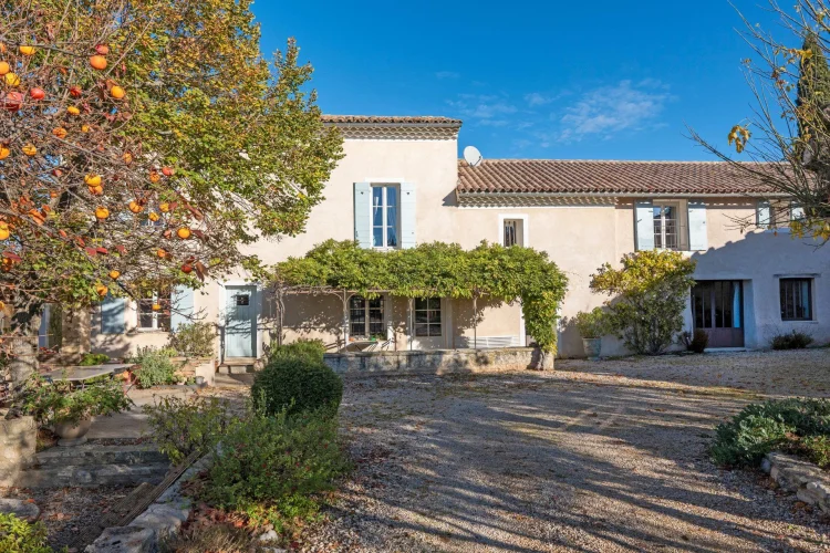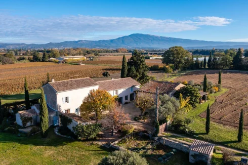 This farmhouse is located in a quiet, idyllic place without vis-à-vis. Positioned in the heart of its land of approximately 3 hectares made up of approximately 2 hectares of vines, it enjoys a magnificent view of the Dentellles de Montmirail and of Mont Ventoux as well as the surrounding countryside. The farmhouse was restored in 2011 and respecting its origins. It offers around 350 m2 of living space on 2 levels with beautiful living spaces: - On the ground floor: living room with fireplace and view, 1 large office with a view, a beautiful kitchen with a view, open to the dining room, utility room / laundry room, 1 office, 1 Wc, cellar in the basement and storeroom. It also has a beautiful workshop with shower room. - Upstairs: A master suite with dressing room of around 45 m2, 3 large bedrooms each with a shower / bath room and toilet. The property has a large closed outbuilding of approximately 100 m2. The land in one piece, of approximately 3 ha, has a swimming pool and a vegetable garden. There is typically Provençal vegetation: large lime trees, cypresses, olive trees, pines, lavender and junipers. Borehole and well water, underfloor heating and cooling system and electric. Property offering beautiful unobstructed views with a lot of charm, authenticity and absolute calm. Proximity: Only a few minutes from the center of a tourist village with all its amenities and 25 minutes from Avignon and its Tgv station.
