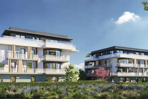 Nice apartment with 4 bedrooms on the last floor ! Other lots and floor plans are available on request. Just 10 minutes from Geneva, Divonne-Les-Bains combines the charm of a small town with an upscale lifestyle, thanks to its luxury hotels, fine dining, golf course, racecourse and casino. With Geneva international airport just a short drive away, Divonne-Les-Bains is a popular holiday spot and a very pleasant place to live. Enjoying a privileged location midway between the Haut-Jura nature park and Lake Geneva, the first ski resorts are just 20 minutes away, and there are many hiking trails from Mont Mussy, which overlooks the town. Lake Divonne boasts a wide range of sports and leisure activities, including a watersports centre, playground, beach, swimming, kayaking and windsurfing. The Prestige is located in a quiet, sought-after residential area. Just a 5-minute walk from the residence, Lake Divonne lies in a peaceful setting with views of the Mont Blanc mountain range. Primary schools, a junior high school, shops and leisure activities are all within easy reach. Contemporary Architecture The residence comprises three small units. The choice of materials, textures and colours, along with the flat, green roofs and the use of protrusions and recesses on the façades, all combine to create a contemporary architectural style. Everything has been designed to create a development that is both original and discreet. The open layout of the buildings on the plot naturally blends the architecture into the landscape and within this quiet, much sought-after part of Divonne-Les-Bains. 45 apartments (1 bedroom to 4 bedrooms), 4 attics The materials, finishes, fittings and equipment are all in keeping with this luxury residence. The apartments are bright and spacious, with terraces, balconies or gardens extending the living space outwards. Special attention has been paid to orientation, with most apartments enjoying a double aspect or, in the case of the attics, a triple aspect. Lumicene® bay windows give the properties 180o views !
