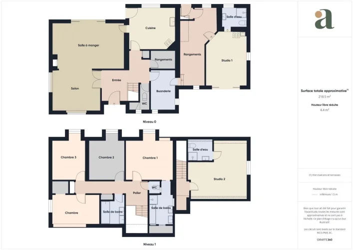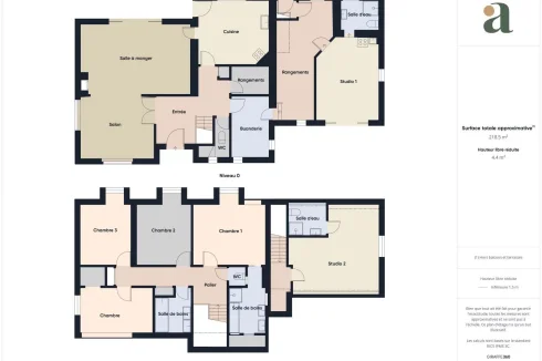 Two independent studios of 20m² and 22m² have been set up within the property, each with its own access. These units are ideal for student rentals (thanks in particular to their proximity to the veterinary school), generating rental income of around €900/month. They can also be used as additional bedrooms, work spaces, or as part of the main living space.