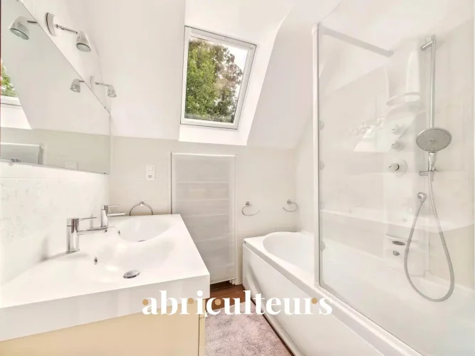 Located in the Gachet residential neighborhood, right next to the Erdre river and Chantrerie park, this spacious family home offers a peaceful living environment in the heart of a verdant setting.