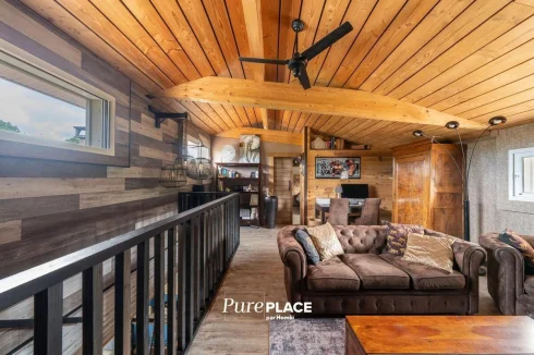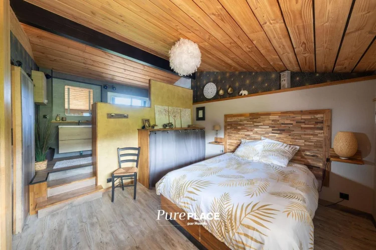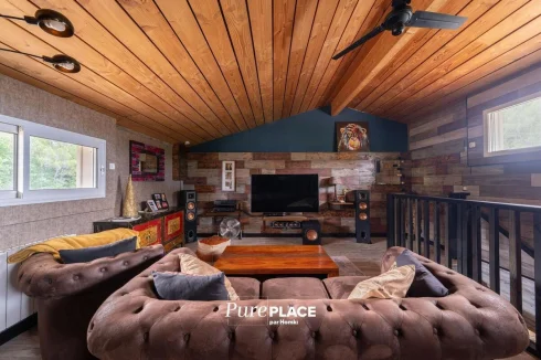 Designed for lovers of modern comfort and design, this house seduces with its elegant combination of wood and metal, its warm atmosphere and its exceptional quality of insulation, ensuring a pleasant freshness in summer and a cocooning atmosphere in winter around its closed fireplace.