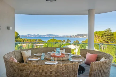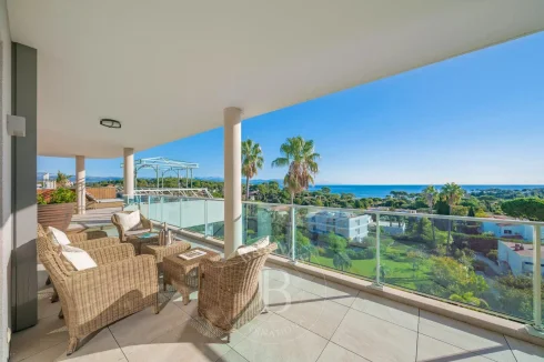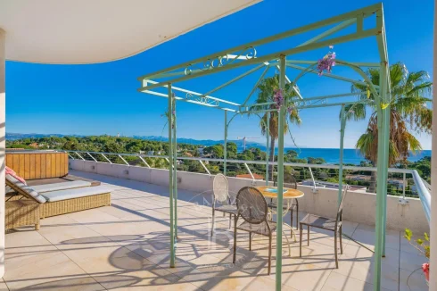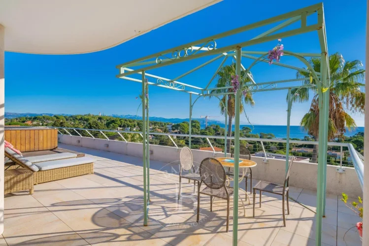 Nestling in the heart of Cap d'Antibes, this splendid roof terrace boasts unique panoramic sea views on both sides of the Cap, from east to west.