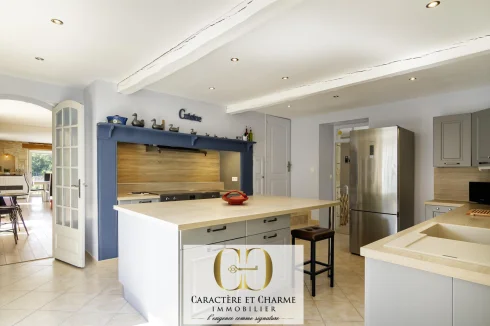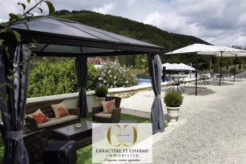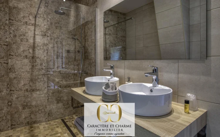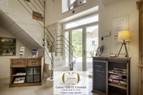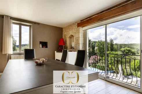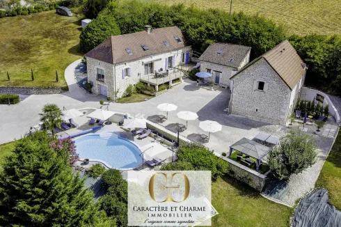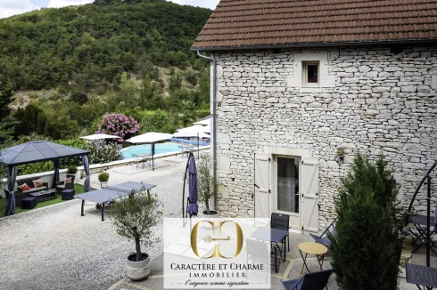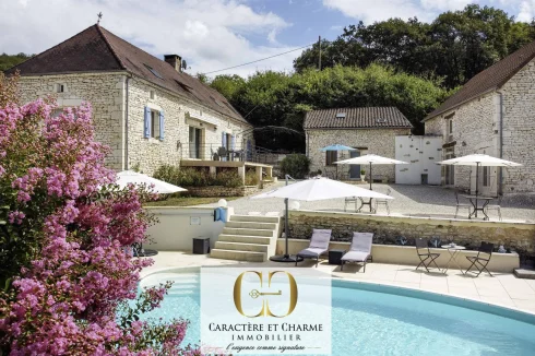 17 km from Sarlat. Beautiful residence of the Périgord noir with white stones, ideally nestled in the Dordogne valley at the gateway to the Lot. It shines with its location, its friendliness, its spaces and its potential. A little corner of paradise bathed in traditions and high services, which consists of a main house of 210 m2 of living space (garage and cellar in addition), an independent gîte (30 m2), and a barn recently renovated into high-end guest rooms, offering modernity and comfort of life (3 guest rooms + kitchen and dining room area). The outdoor spaces perfectly complement this place with its terraces, its particularly pleasant heated swimming pool, all in an intimate and relaxing setting. The positioning on the hillside of the house naturally offers very beautiful views, especially in the main house. An enchanting place, it allows sharing and significant tourist activities if you want to continue the rental activity, near the cycle paths and canoe descents. A very interesting working tool due to its size, neither too big nor too small with its gîte and its 3 guest rooms, for a substantial and constantly increasing turnover, in particular thanks to the rave customer reviews. The guest room part can easily be converted into a gîte, or into a guest house for an entirely family property. The 6200 m2 plot and the natural spaces created with harmony, perfectly surround the built parts, and are very easy to maintain. It is therefore a typical property, with all the charm and materials that characterize it, but there reigns here a special, unique atmosphere, made of peace, welcome, rest, which inspires beyond its simple aesthetic beauty. If you aspire to a quality place, you are in the right place. And if the rental activity and the tourist reception interest you, then this house is a real invitation on two counts... Virtual tour on request.