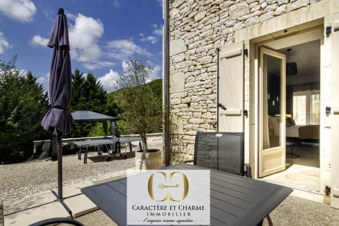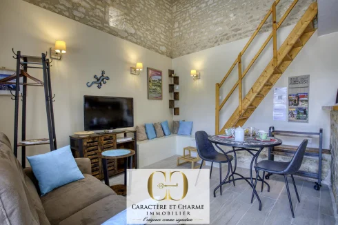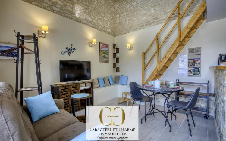 Gîte: 30 m2- Air conditioning and electric heating - Living room + open kitchen - Shower room Upstairs: Mezzanine bedroom Guest house building (travertine, reversible air conditioning)