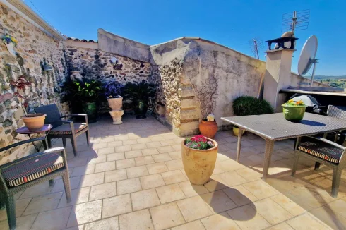 The house is a few steps from the bakery. Two exceptional restaurants and a popular tapas/wine bar on the village square. It's arranged over three floors and offers generous living space and a private rooftop terrace with views that will take your breath away!.