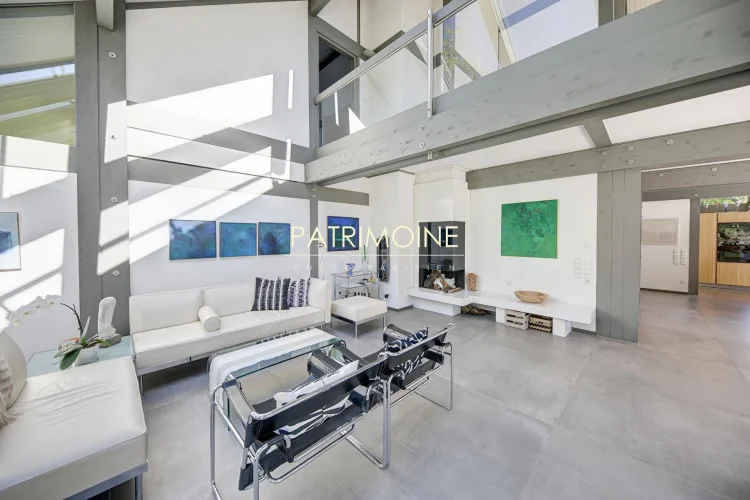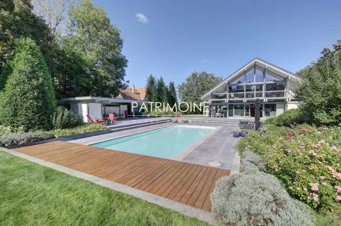 Nestled in a green, private setting with no overlooking neighbors, this exceptional home was built in 2002 by the renowned German builder Huf Haus. Offering 353 m² of living space on a 3,960 m² landscaped plot, the property features a 10 x 5 m heated outdoor pool with a pool house.