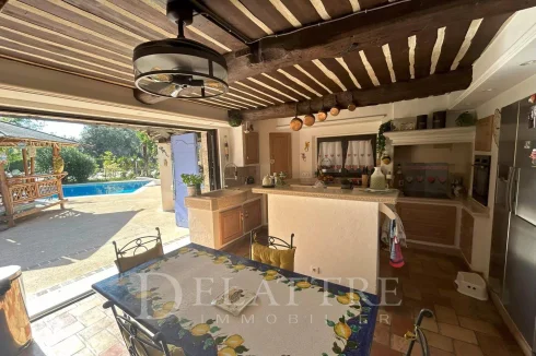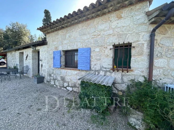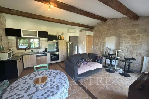 In absolute peace and quiet on grounds of approx. 9980M2. This large property comprises a stone farmhouse of approx. 200M2 on 2 levels with a traditional south-facing swimming pool. It comprises a living room opening onto the kitchen. A second closed living room with fireplace. A suite with bathroom. A bedroom. A large dressing room and a shower room. Upstairs. A mezzanine opening onto the living room. A third bedroom. A bathroom and a dressing room. Adjoining the farmhouse is a 2-room apartment of approx. 45M2.
