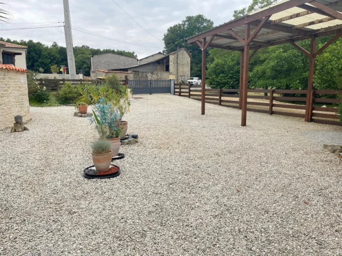Charmaing stone property ready to move into , 2 klms away from baker and 8 klms to the market town of Aigre with all its commodities . Itoffers a fitted kitchen and diner, lounge with wood burner, a lounge or bedroom, shower room with toilets. Upstairs there are 3 large bedrooms on wooden floors, a bathroom with toilets. Front Garden with open barn and carport ideal for camping car . Very confortable property , nice renovation with original features .