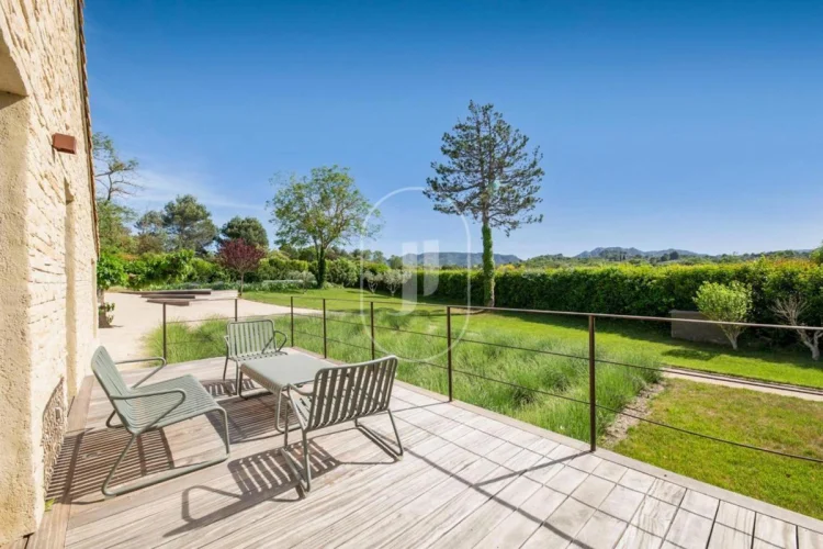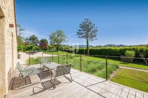 Pine forest environment with views of the Alpilles mountain range and the village. A bucolic garden with many Mediterranean species and a heated swimming pool of 10 x 5 m with a teak beach.