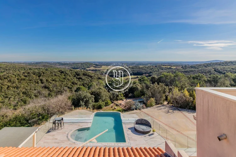 This vast property spans 890 m2, comprising 570 m2 of living space, 170 m2 of ancillary rooms and 150 m2 of garages. This superb property is set in 32 hectares of garrigue and forest, just 20 minutes from Montpellier.