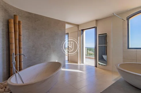 Double lounge of 200 m2, with its vast kitchen, opens onto the terrace and its infinity pool. 4 beautiful suites of over 40 m2, some with an additional office. And to top it all off, a 120 m2 master suite on the top floor with its own private terrace overlooking this majestic property.