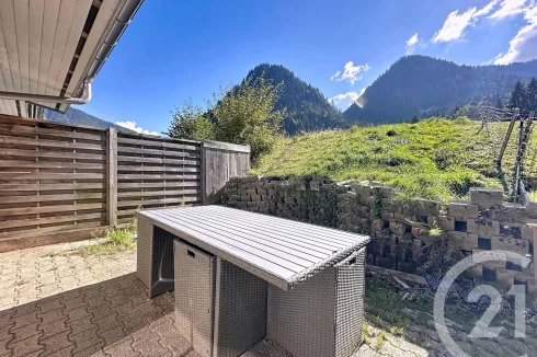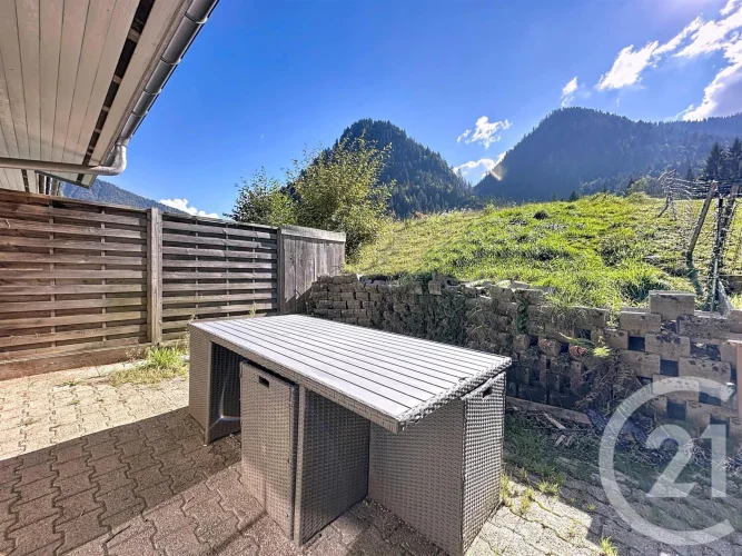This charming apartment is located not far from the centre of the village of Saint Jean d'Aulps, the Roc d'Enfer (La Grande Terche) ski resort, and less than a 15-minute drive from Morzine and the fabulous Portes du Soleil ski area. The beautiful living area is particularly pleasant. Its layout allows for a cozy sitting area and a living/dining room with a fitted and equipped kitchen. This very bright and sunny room is extended by a terrace, which is just waiting to be converted into a little corner of paradise: a table to welcome your friends for a barbecue, deckchairs and perhaps a a vegetable patch... The terrace also has access to a small garden and unobstructed views of the surrounding mountains and nature. The sleeping area consists of three attractive, bright double bedrooms. There is also a shower room and separate toilet. A large cave and a workshop complete this apartment. This privileged space has direct and independent access to the house. This apartment with its 2 outdoor parking spaces is ideal as a primary residence. It could also be a very attractive rental investment. The list of furniture and materials used for the virtual makeover is available on request.