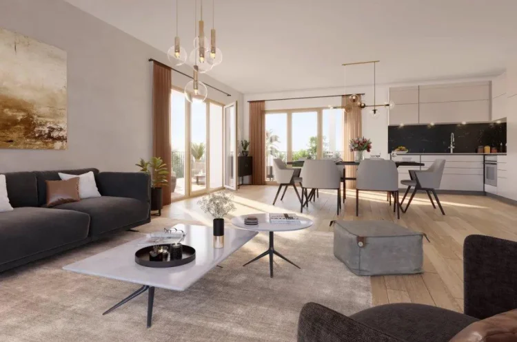 Apartment with 3 bedrooms. Other lots and floor plans are available on request. The residence offers attractive flats from studio to 4 bedroom apartments, with through views and generous outdoor space. On the top floor of the building, a rooftop terrace offers residents the chance to share convivial moments with neighbours, family or friends. All of the flats have been designed to offer a dual aspect, with the addition of a balcony or terrace for an extra room when the sun comes out. From studios to 4 bedroom apartments, there's something to suit every need. At the gateway to Geneva, less than 5 minutes by car from the Grand-Saconnex customs post and Geneva-Cointrin airport, Ferney-Voltaire is now one of the most sought-after communities on the Lake Geneva region. Close to beautiful natural and wild areas, such as the Haut-Jura regional nature park, the town is attracting more and more new residents. Ferney-Voltaire is a small town on the French-Swiss border. It was named after Voltaire, who lived here for more than 20 years. A charming, peaceful town on a human scale, it has a pleasant town centre with shops and restaurants, as well as numerous green spaces. This new development is part of the Ferney-Genève Innovation project, which was born out of a desire to strengthen cross-border links between France and Switzerland and support the region's economic development. This urban project includes the construction of offices, research laboratories, coworking spaces, housing and shops. Ferney-Voltaire enjoys a privileged geographical location, just a few minutes from Geneva and right next to the Swiss border. The town is easily accessible via several major roads. The A40 freeway links Ferney-Voltaire to Geneva in just a few minutes. By 2030, the Zac will include hotels, offices, high value-added businesses, a shopping, cultural and entertainment hub around the new Voltaire cinema, and a conference, sports and wellness center.