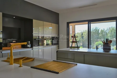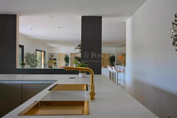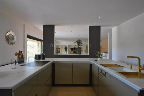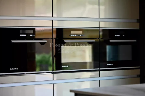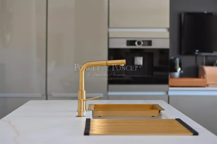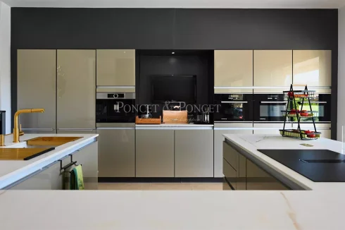 The modern, spacious kitchen is fully equipped with top-of-the-range appliances and generous work surfaces, ideal for lovers of fine dining and conviviality. All areas have been designed to offer optimum comfort and a seamless connection with the outdoors.