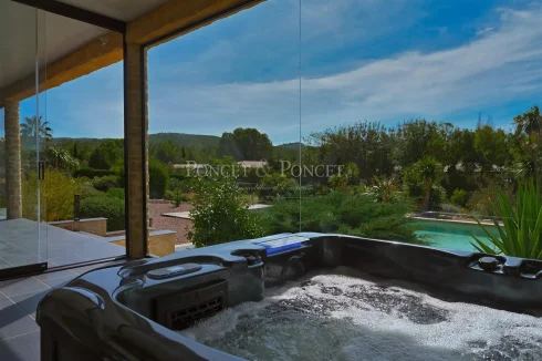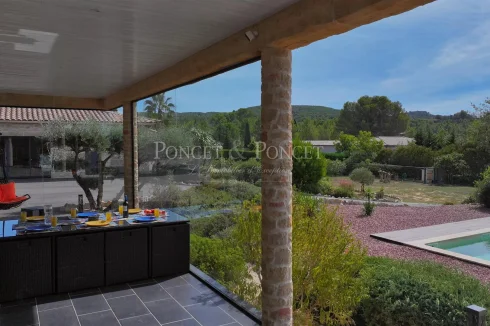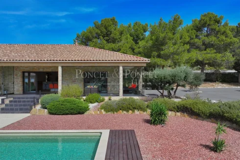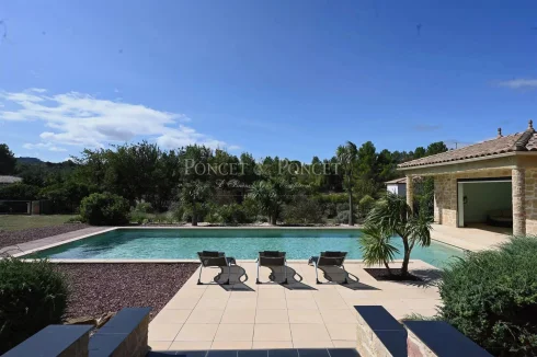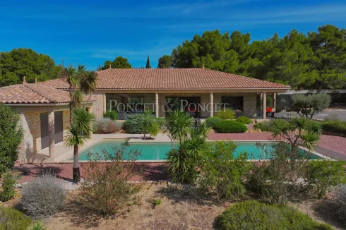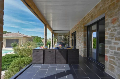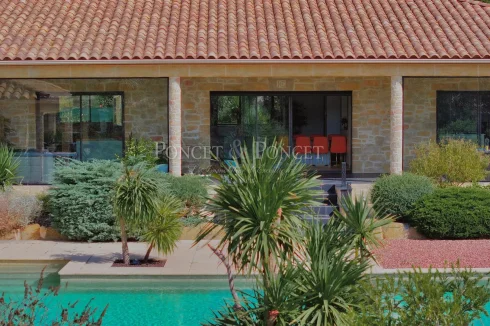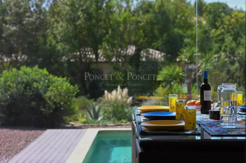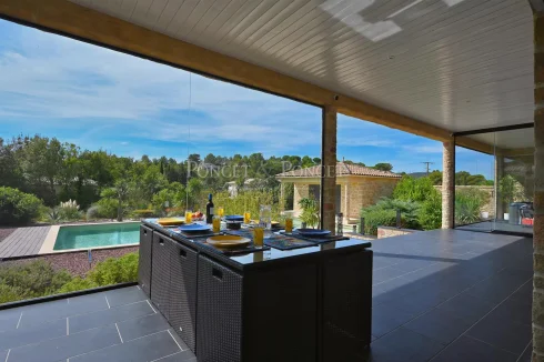 It is surrounded by vegetation, offering uninterrupted views from its vast covered terraces. The region's sunny climate and proximity to the Mediterranean and famous vineyards make this property an ideal place to enjoy the relaxed lifestyle of the South of France.