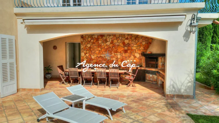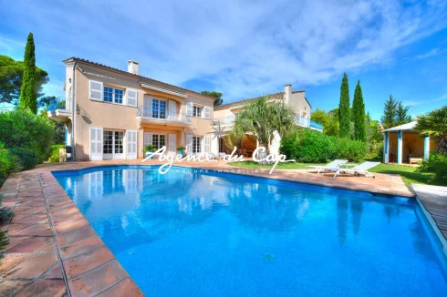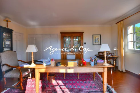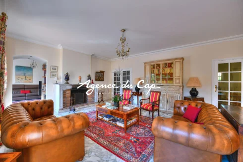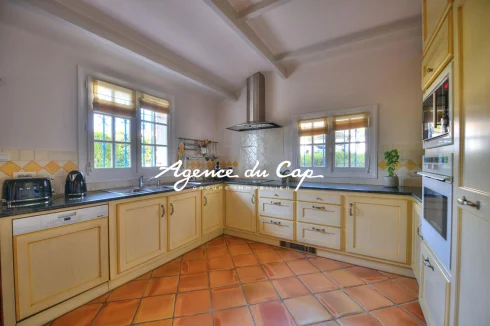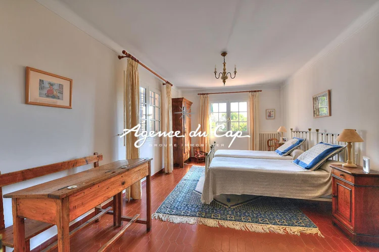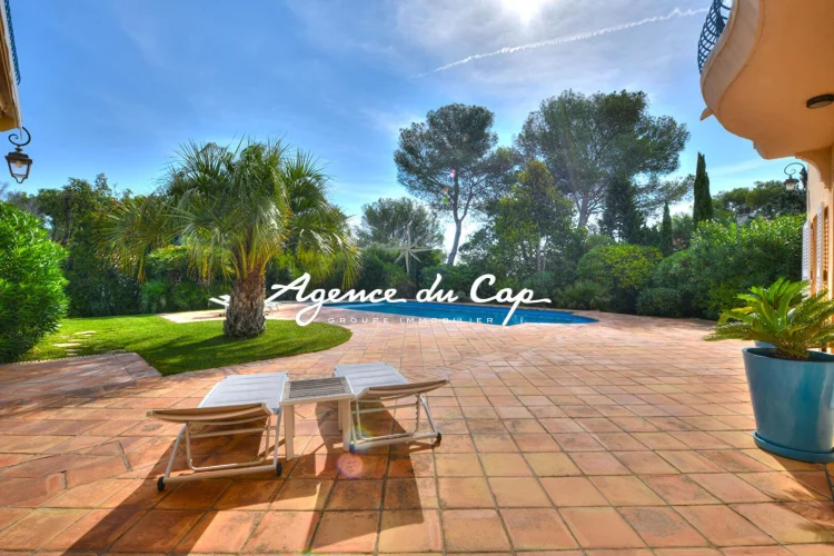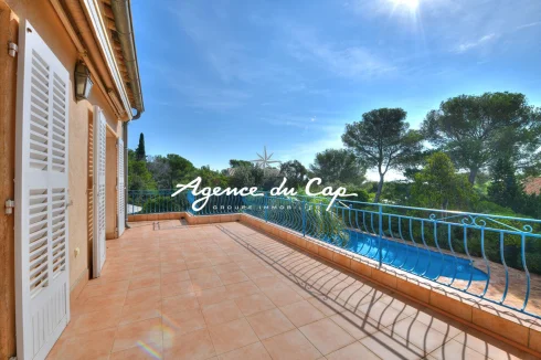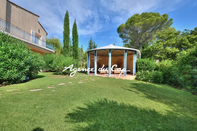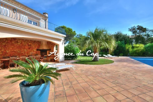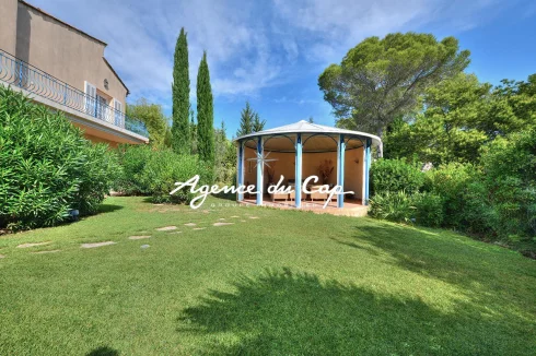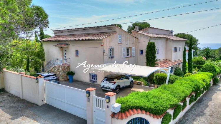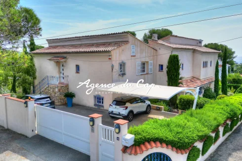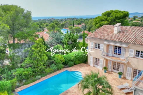 This charming villa of more than 300m², perfectly maintained, offers a dominant and unobstructed view to the sea. It opens onto a magnificent garden of 1340 m² with heated swimming pool and covered terrace with summer kitchen.
