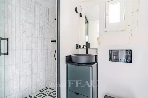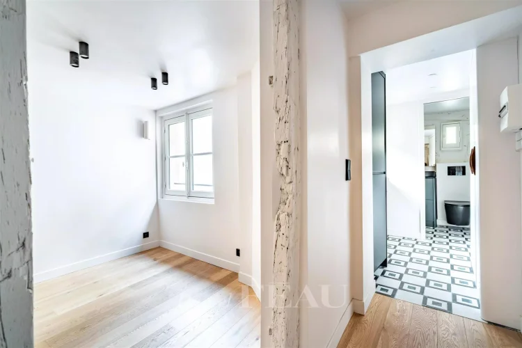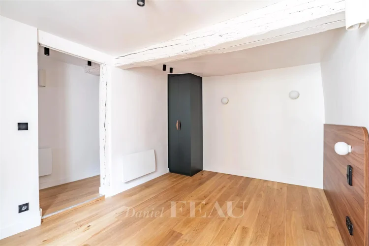 Perfect location for this fully renovated pied a terre, featuring 21,7 sqm on top floor without lift of an ancient building. It comprises a bedroom/living room, a little separated kitchen and a shower room with wc.