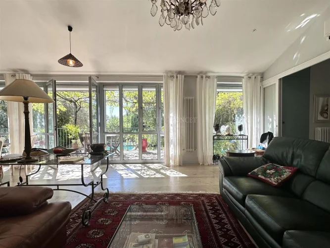 Surrounded by a landscaped garden, the house features a raised terrace, a swimming pool, and a preserved green haven, ensuring total privacy. South-Facing, it benefits from natural light throughout.