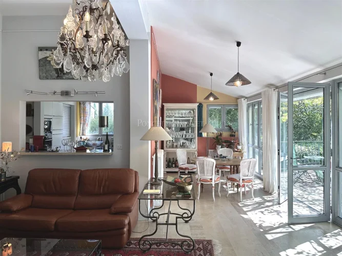Upon entering, a welcoming hallway leads to a reception area opening onto the terrace, combining a lounge and dining room, as well as a semi-open fitted kitchen and a pantry.