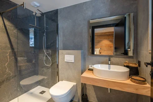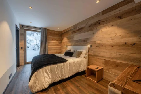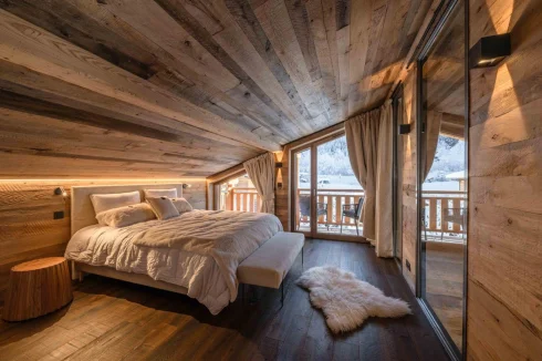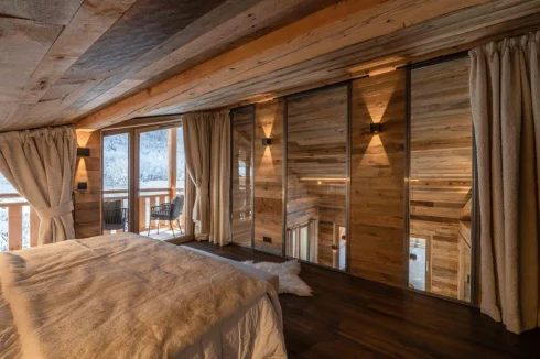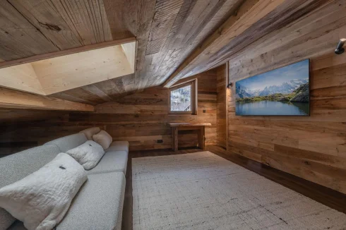 Let yourself be seduced by its spacious living room with central fireplace, bathed in light thanks to its vast south-facing roof terrace with a breathtaking view of the Bossons glacier. For even greater comfort, there's a sublime master suite with a balcony overlooking the famous Aiguilles du Midi mountain range.