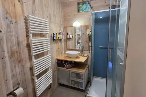 The land, of about 800 m² not overlooked, allows many outdoor developments according to your needs. Also outbuildings: laundry room, shower room, toilet, workshop, cellars.