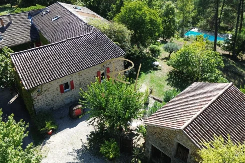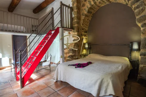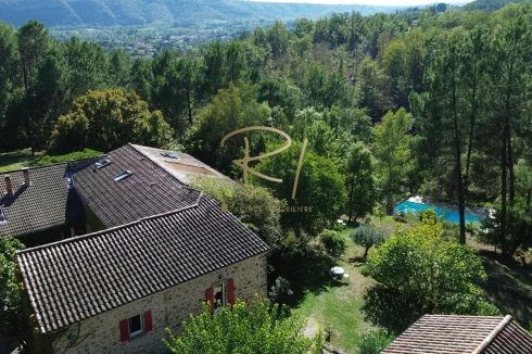 Just five minutes from the shops, in a preserved natural setting typical of the South Ardèche, this magnificent stone property offers a true haven of peace, while being close to the region's major tourist sites. Currently operated as a bed and breakfast, the 245 m2 property extends over more than 3 hectares of land, featuring a small stream below, a beautiful 14x5 m swimming pool, and a pleasant terrace shaded by wisteria, ideal for outdoor dining on sunny days.