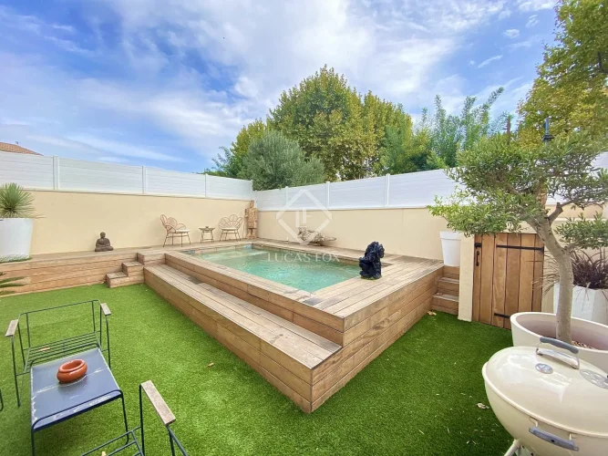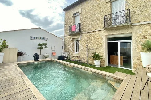 Lucas Fox International Properties, located east of Montpellier, between Baillargues and Lunel, charming renovated village house with swimming pool and garage. On the ground floor there is a beautiful entrance hall with guest toilet, a large living space with kitchen open to the living room and dining room, a laundry room. A beautiful period staircase leads to the 3 bedrooms upstairs (including 2 suites), toilets and a Tropezian terrace. The town garden/terrace includes a superb swimming pool with spa area and a garage. Beautiful features: ducted air conditioning, water softener, alarm, electric gate, electric wine cellar, character house. Get the complete file and more information from your dedicated agent, David Lillo Commercial Agent - Rsac n° Nîmes. Information on the risks to which this property is exposed is available on the Géorisques website: