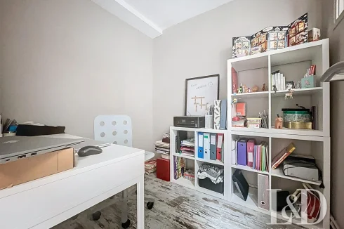 A few steps up, a bedroom, a shower room and an office (or dressing room).
