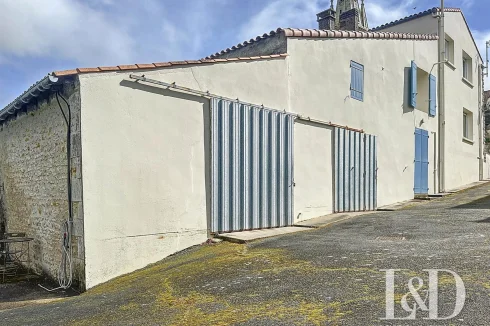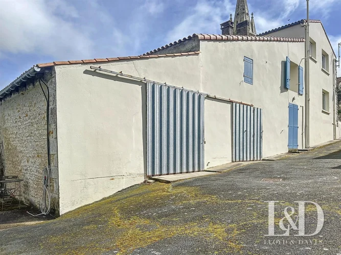 A large courtyard on the side where you can park your vehicles, giving access to two outbuildings: a garage/workshop of 30 m², a boiler room, cellar and a