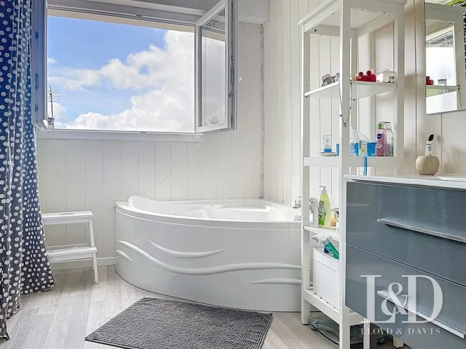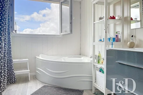 On the ground floor, with independent access, a room of 20 m² with fireplace and toilets, which can make a fourth bedroom, a room for a liberal profession...