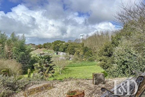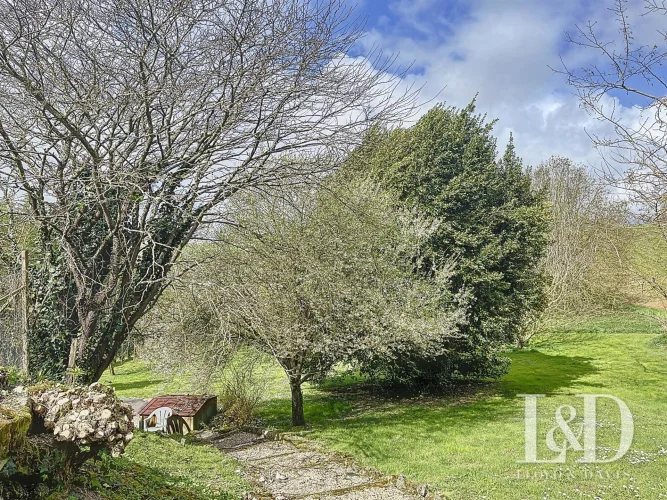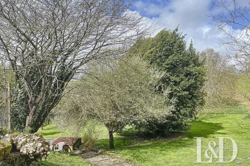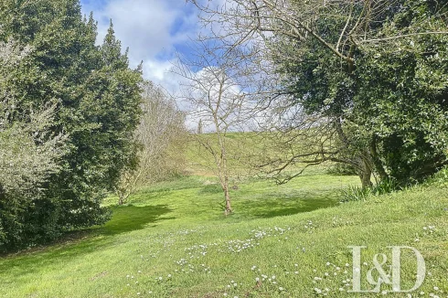 Below, the garden, with a platform that can accommodate an above-ground swimming pool or a beautiful terrace facing the surrounding countryside