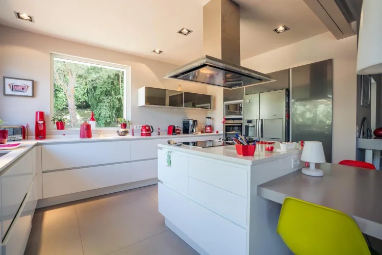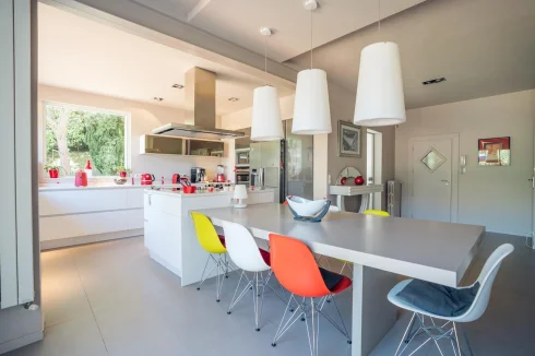 The contemporary family kitchen is the heart of this home opens onto a large terrasse which can also be accessed from the separate dining room next door.