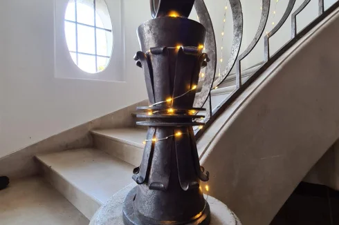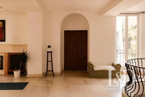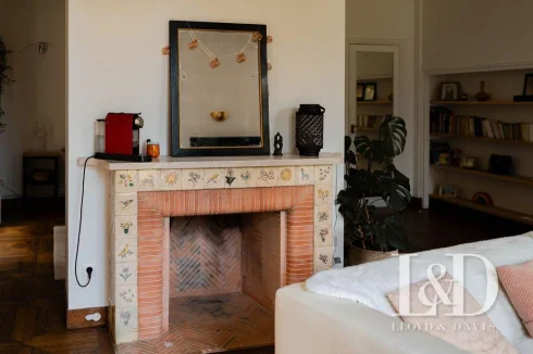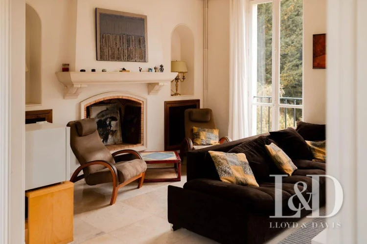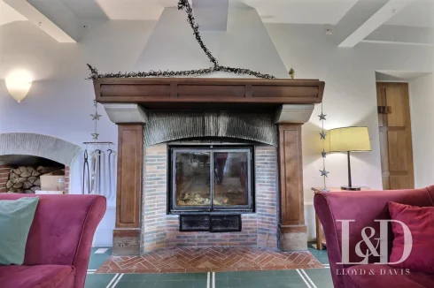 As you enter the castle, you will be caught up in this vintage but warm interior of this living room adorned with a beautiful fireplace.