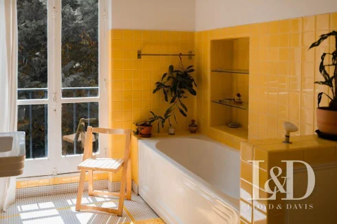 On the right-hand side a large and bright dining room with a view of the park, a large kitchen, a pantry and a scullery in the tower give this property a convivial character.
