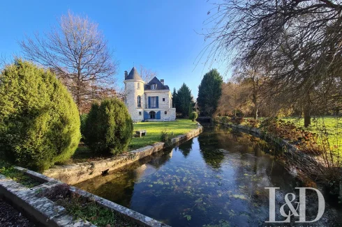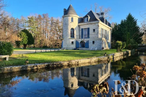In the heart of this property, fully enclosed, of 8.1 ha divided between a park, clearings and a wood stands a majestic castle of 600 m², rebuilt in the 50s, spread over 3 levels accessible by two bridges spanning the arms of the Essonne river.