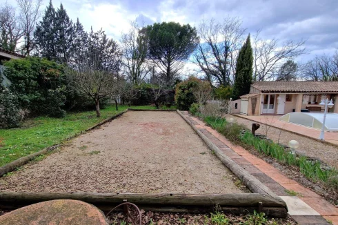 The terraces, the workshop of 27 m2 (convertible as a studio), the 2o large garage (2 cars, 93 m2) and the swimming pool (with winter cover) offer this house appreciable additional space. In addition, there is also a permanent car port, for 4 cars of 80 m2, which can be converted as a T3. Petanque court. 2 Access.