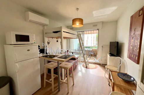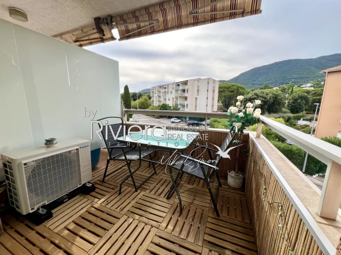 Exclusive! In a quiet location on the 3rd floor with elevator of a small, well-maintained residence, beautiful renovated and fully equipped studio offering an entrance hall, an air-conditioned living room with an equipped American kitchen opening onto a west-facing terrace with an unobstructed view of the hills, a bathroom with toilet, a cellar in the basement and a private parking space. Elevator upgrade approved and paid for, low co-ownership charges, sold fully furnished, great deal! Contact Eddy Paron / (Ei) Rcs Frejus - Information on the risks to which this property is exposed is available on the Georisques website: