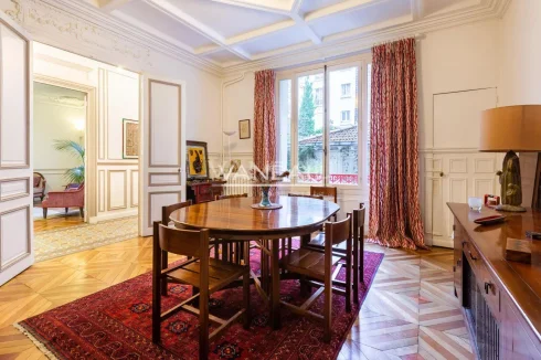 On a street named after an illustrious physicist whose work was devoted to light, this exceptional family home is hidden from view and secure from the street. Once over the threshold of a wide paved courtyard, the house reveals all its elegance, developing 290.82 m² Carrez (370.23 m² floor area) and opening onto an intimate 95 m² garden. Right from the entrance, the central staircase sets the tone and leads to generous reception areas: a vast, light-filled double living room, where high ceilings, delicate moldings and a period fireplace interact with a 19 m² patio that extends the living room. A convivial dining room, spacious galley kitchen and guest toilet complete this level.