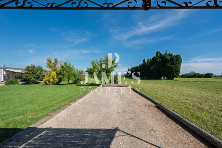 Outside, the landscaped garden of 8,000 m² offers a true haven of peace, featuring a heated 10x5 m swimming pool, a pool house, a jacuzzi, and a petanque court.
