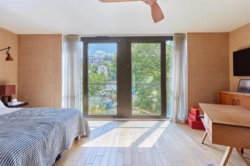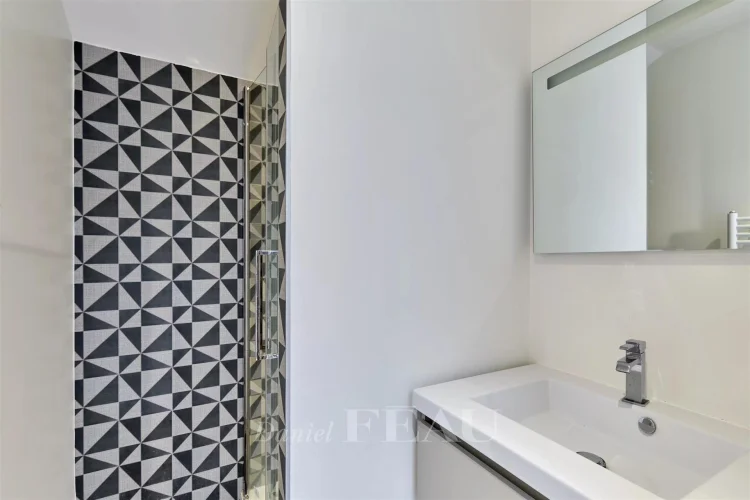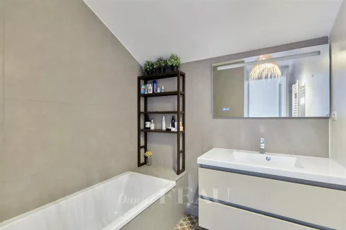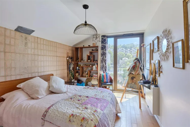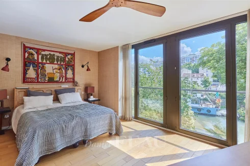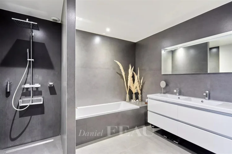 Offering 238 sqm of floor space and 211 sqm of living space as defined by the Carrez Law, it includes an entrance hall featuring an 8.80 metre high ceiling, and a south-facing near 70 sqm living/reception room with an equipped semi open-plan kitchen bathed in sunshine thanks to three patio windows opening onto 3 terraces accessing the pontoon. A master suite with a bathroom and dressing room, and a second bedroom with a shower room are upstairs. The top floor comprises three further bedrooms and a bathroom.