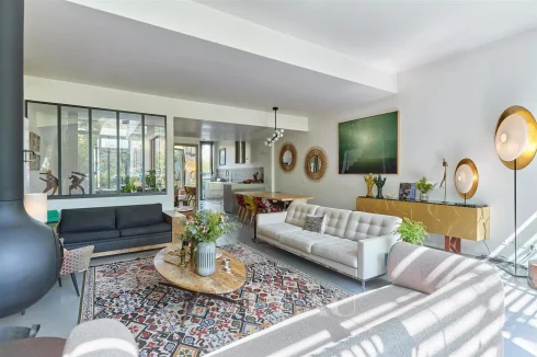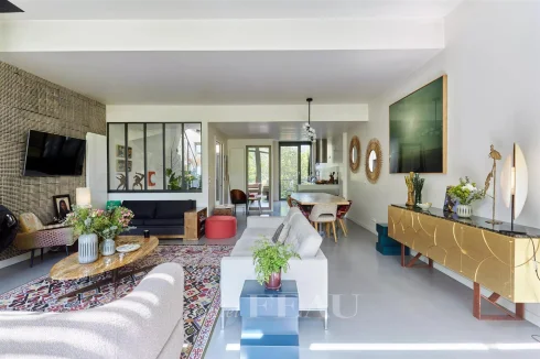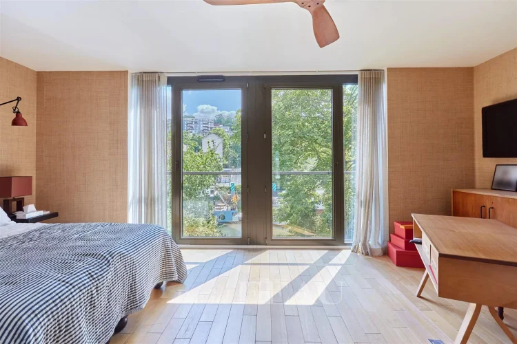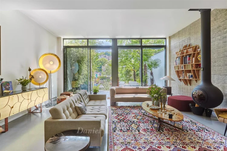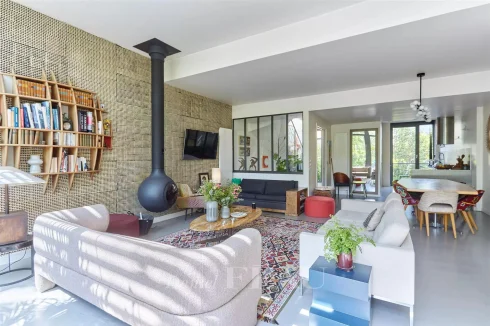 On Ile Saint Germain, linked to Boulogne by the Pont de Billancourt, this architect-designed property dating from 2015 benefits from a pontoon directly accessing the Seine.