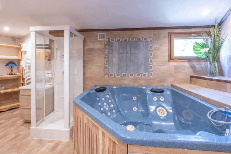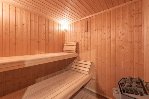 Wellness area with fitness corner, spa, and sauna