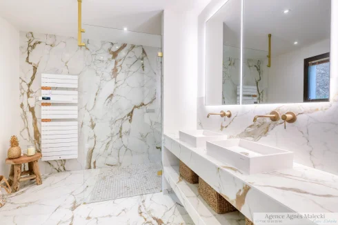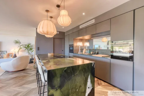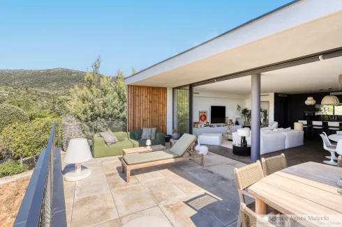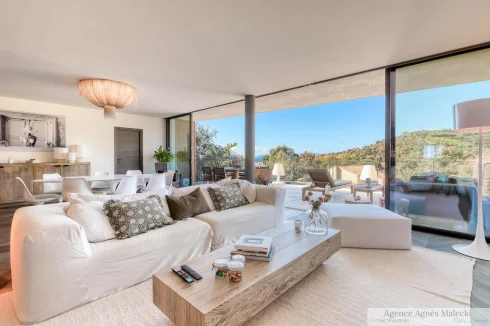 Cavalière Plages - In a luxury residence with three co-owners, this top-floor villa offers an exceptional setting. Nestled in the greenery and facing west, it has two large terraces (40m2 and 17m2) to enjoy the light. This 185m2 property, fully air-conditioned, includes a large living room, a lounge, and a high-end Leicht kitchen with Avocatus stone worktop. All of it opens onto a beautiful west-facing terrace. The lower floor houses two master bedrooms with private shower rooms and toilets, as well as two other bedrooms equipped with showers and toilets. The apartment is decorated with oak parquet floors and a laundry room. On the practical side: four garage boxes and a parking space. The beach and amenities are within walking distance. No work to be done, all that's left is to put down your suitcases. In an exclusive, luxurious residence with three co-owners, this top-floor villa offers an exceptional setting. Nestled in greenery and facing west, it features two large terraces (40m2 and 17m2) to enjoy the sunlight. This 185m2 fully air-conditioned property includes a spacious living room, a lounge, and a high-end Leicht kitchen with an Avocatus stone countertop. The entire space opens onto a beautiful west-facing terrace. The lower floor houses two master bedrooms, each with en-suite showers and toilets, as well as two additional bedrooms with their own showers and toilets. The apartment is enhanced by oak parquet flooring and includes a laundry room. For convenience, there are four garage boxes and an additional parking space. The beach and all amenities are within walking distance. No renovation work is required?just move in and enjoy.