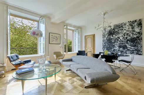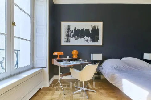 Rue Michel Lecomte. This peaceful apartment on the 1st floor of a fine 17th century building offers 65.11 sqm of living space as defined by the Carrez Law. In perfect condition, it includes a bright living/reception room with two wide windows enjoying a view over a south-facing garden and of the façade of the National Archives, a kitchen, a bedroom also enjoying a view of leafy greenery, and a bathroom.