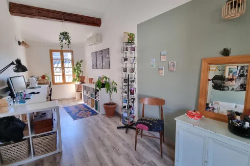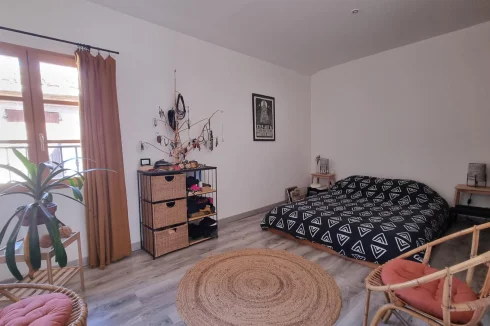 Apartment located on the 2nd floor of a complex of 2 co-owned buildings. It is composed of an entrance/office, a fully equipped kitchen, a living room, 2 bedrooms, a bathroom with toilet. Heating by reversible split-type air conditioning. Fully renovated apartment with double-glazed windows, bright.